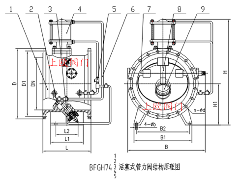 2、BFDG7h42調(diào)節(jié)型(A手動(dòng)、B電動(dòng)) 在普通型基礎(chǔ)上,通過在控制腔上安裝調(diào)節(jié)裝置,可以根據(jù)系統(tǒng)要求采用手動(dòng)或者電動(dòng)調(diào)節(jié)閥門開度,以達(dá)到對管網(wǎng)內(nèi)介質(zhì)流量的粗量調(diào)節(jié)與控制。電裝常規(guī)供貨為普通型,有特殊要求,可按用戶要求配置。